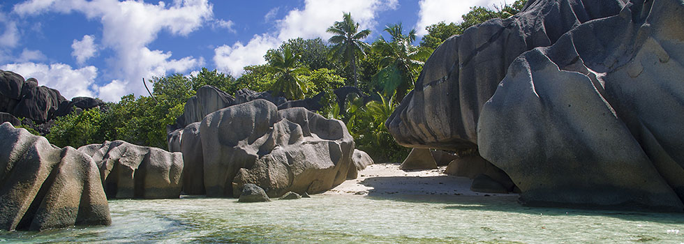 La Digue, gemessen an den anderen Inseln der Seychellen liegt diese 40 km sehr weit von der lebhaften Hauptinsel Mahé entfernt. Von Praslin erreicht man La Digue mit der Fähre in 20 Minuten.